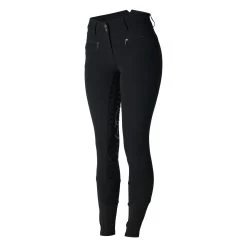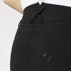 The Women’s Melody Full Seat High Waist Breeches are comfortable and stylish breeches. These high waist riding pants include a silicone print in a fun pattern which adds grip where you need it most. The crisscross belt loops make these women’s breeches a great choice for schooling. Two front zipper pockets hold keys or treats and the elastic lower leg offers comfort under tall boots. Melody Full Seat Breeches are designed with a front zipper and are made from breathable fabric that is slightly stretchy for added comfort in the saddle.