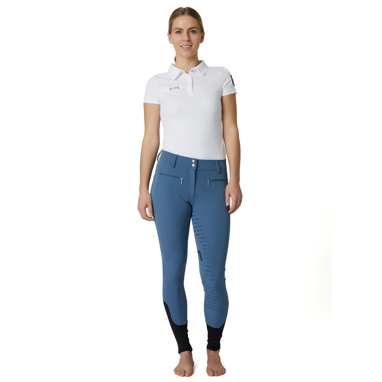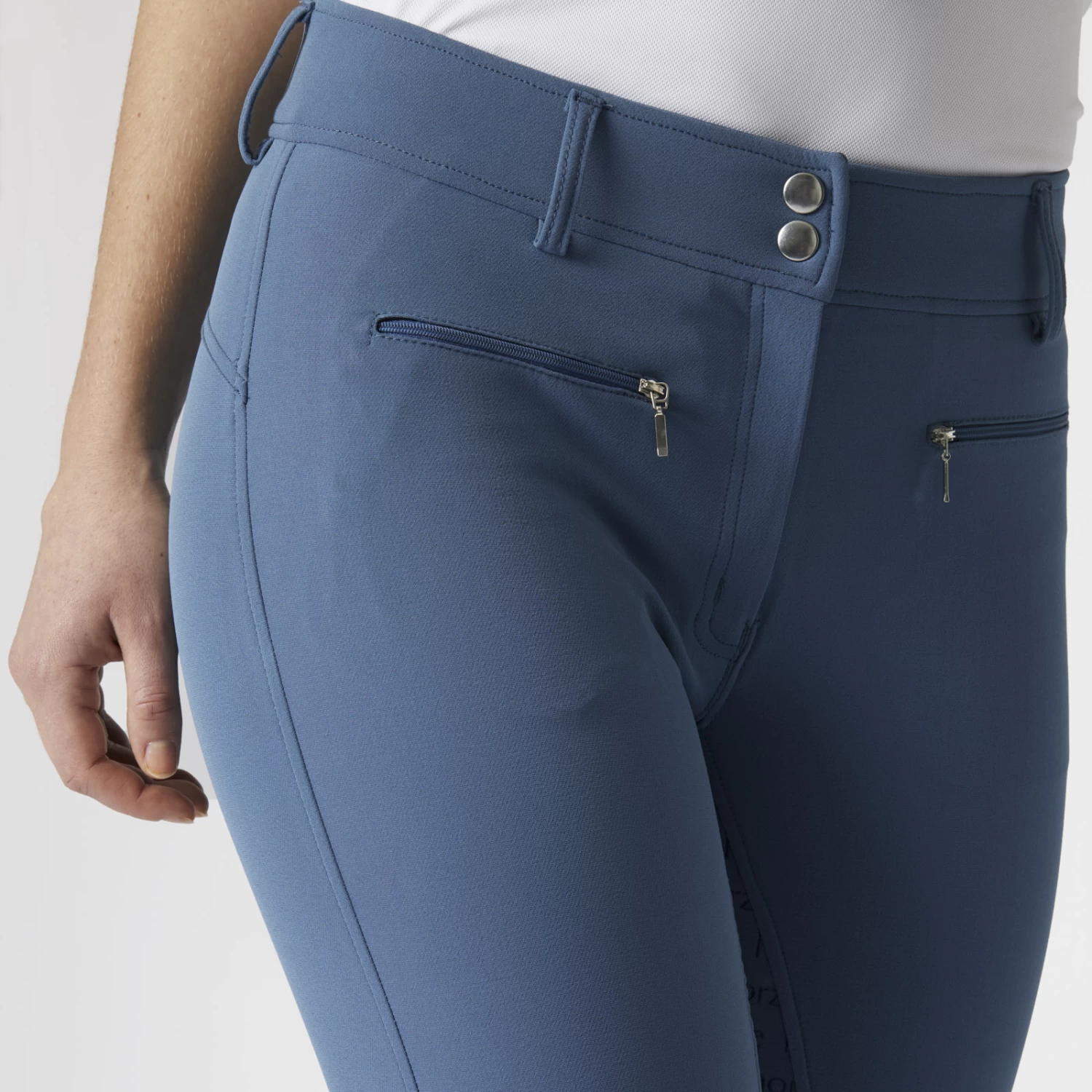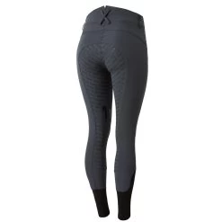 The Women’s Melody Full Seat High Waist Breeches are comfortable and stylish breeches. These high waist riding pants include a silicone print in a fun pattern which adds grip where you need it most. The crisscross belt loops make these women’s breeches a great choice for schooling. Two front zipper pockets hold keys or treats and the elastic lower leg offers comfort under tall boots. Melody Full Seat Breeches are designed with a front zipper and are made from breathable fabric that is slightly stretchy for added comfort in the saddle.