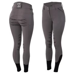 These high waist breeches do not only look super cool, they are also amazingly comfortable. Their silicone full seat is printed in a sporty design, and the belt loop in the back is extra wide and embroidered. Elastic leg bottoms fit perfectly under your boots. Pair them with your favorite top or jumper, and you are good to go!