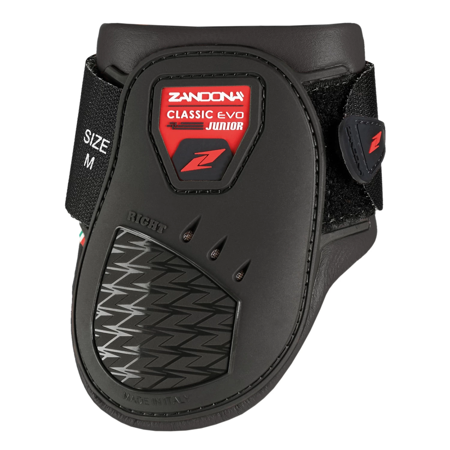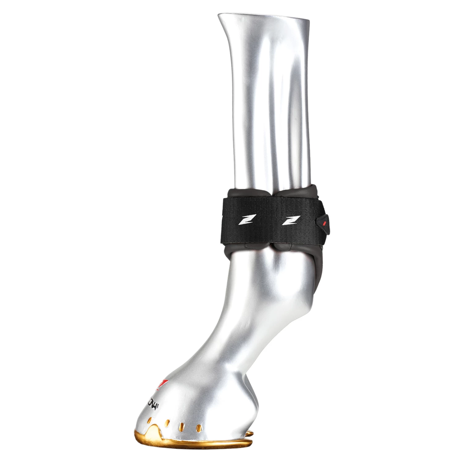 Leather-lined boots to defend young jumping horses from collisions and bruises at hindlimb’s fetlock.