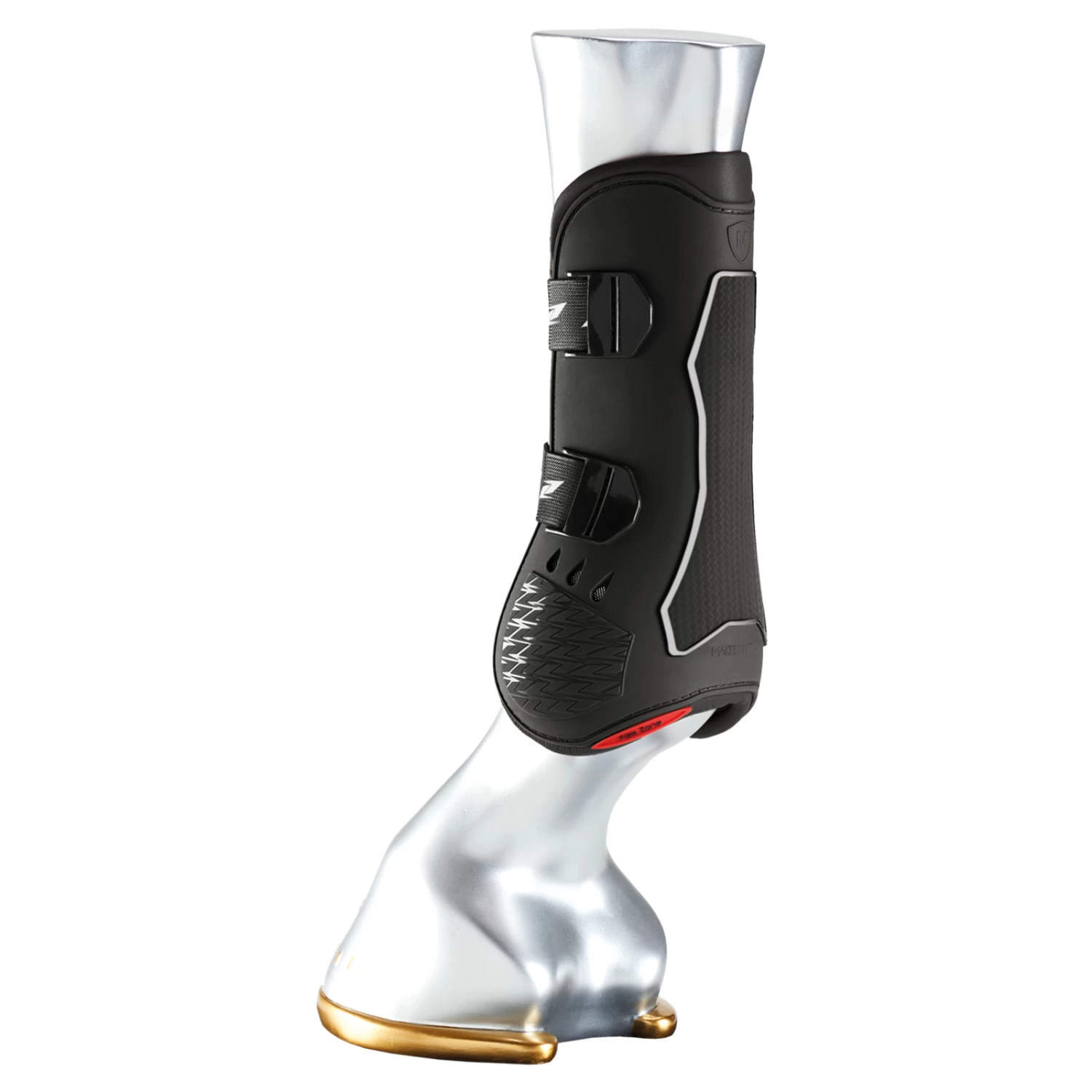 Premium leather-lined horse boots for protecting showjumping horses having delicate skin.