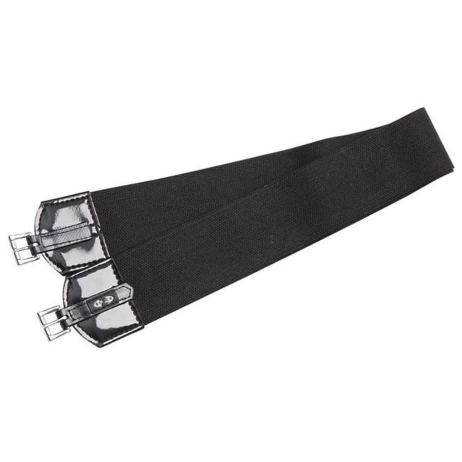 Sometimes referred to as an under girth, the Zilco Double Elastic Racing Girth features stainless steel buckles and color-coordinating patent ends for an ultra-modern look. 3 Inches (75 mm) wide. 3/4 Inch (19 mm) buckles. 40 Inches long (100 cm) long. 8 Ounces (230 gr) approximate weight.